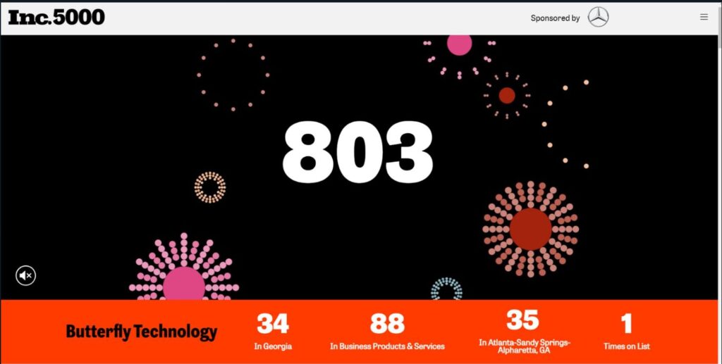 BUTTERFLY TECHNOLOGY Ranks No. 803 on the 2023 Inc. 5000